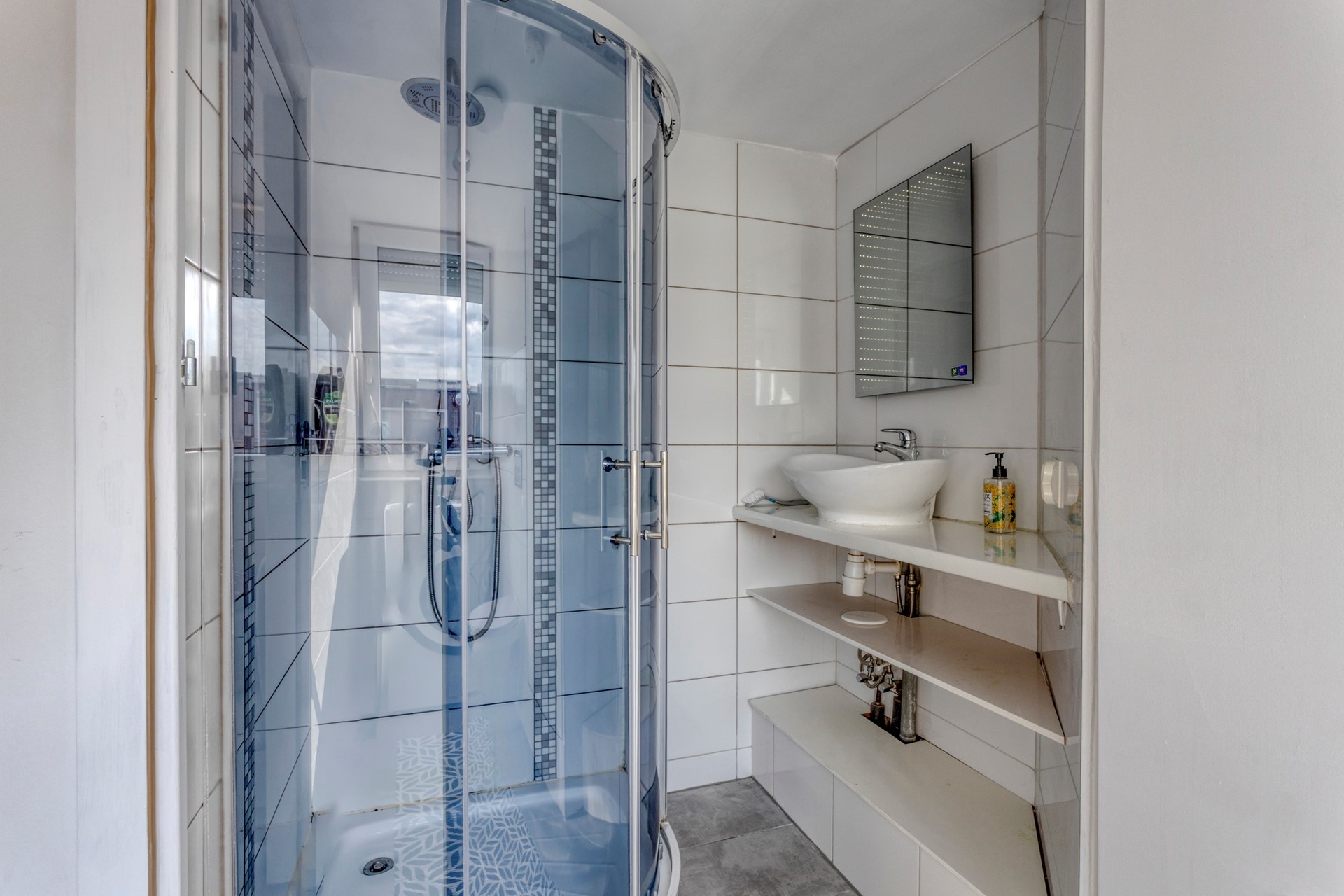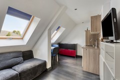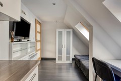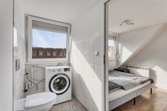 Een verrassend lichte studioverdieping die aanvoelt als een compact appartement! Dankzij twee grote dakramen aan de voorzijde stroomt het daglicht rijkelijk naar binnen, wat zorgt voor een fijne, open sfeer. ook is er een dakkapel over de gehele breedte van de woning aan de achterzijde. De verdieping is slim ingedeeld met een slaapkamer, knusse keuken, een nette badkamer voorzien van douche, wastafel en toilet, én een handige opstelplaats voor de wasmachine.