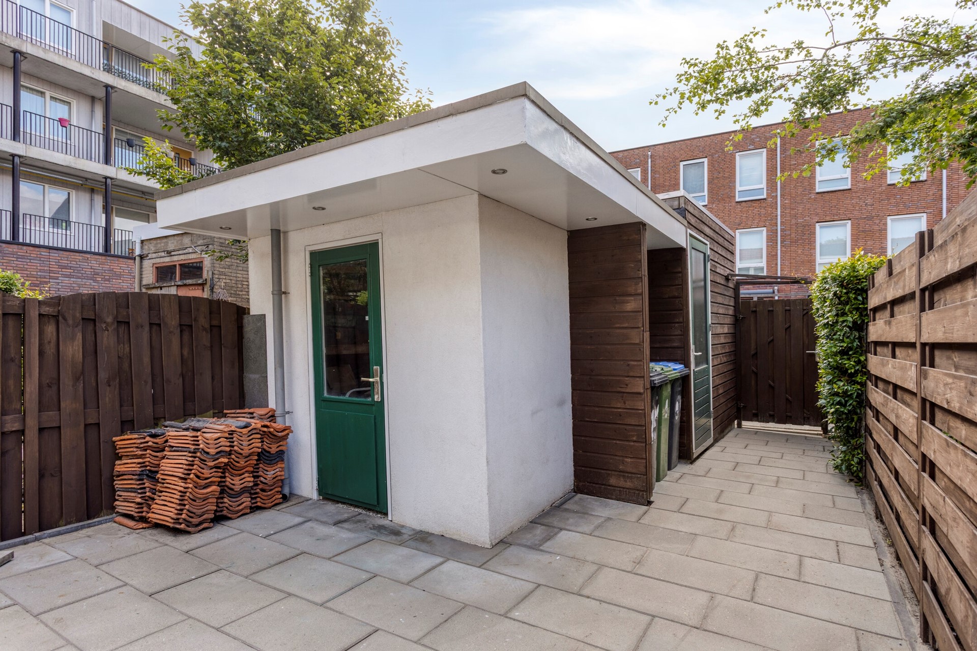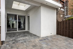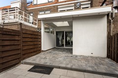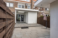 De op het zuidoosten gelegen achtertuin is een heerlijke plek om van de zon te genieten. Achterin bevindt zich een dubbele schuur met aparte ruimte voor de afvalcontainers en er is een achterom aanwezig.