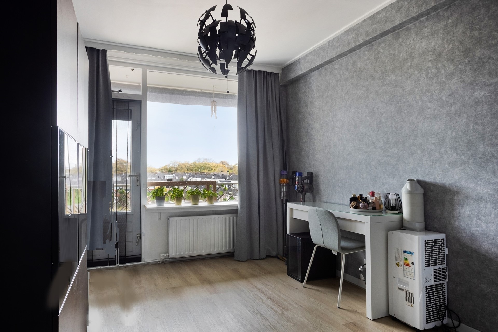 De lichte en sfeervolle woonkamer is extra ruim dankzij het samenvoegen van een voormalige slaapkamer, waardoor een fijne open eetkamer is ontstaan. Vanuit de woonkamer stap je zo het balkon aan de voorzijde op, waar je heerlijk kunt genieten van de ochtendzon.