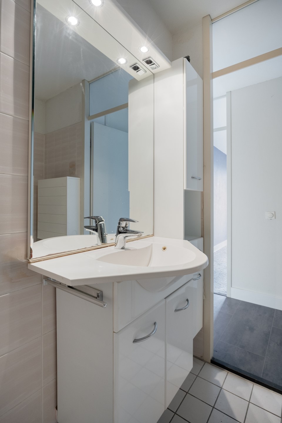 Entree/hal met toiletruimte en fonteintje. Vanuit de hal bereikt u de lichte en sfeervolle woonkamer, afgewerkt met een laminaatvloer en voorzien van een schuifpui naar het brede balkon op het zuidoosten met vrij uitzicht. De woonkamer staat in open verbinding met de moderne keuken, die is uitgerust met een magnetron, oven, keramische kookplaat, vaatwasser en een losstaande koel-vriescombinatie.