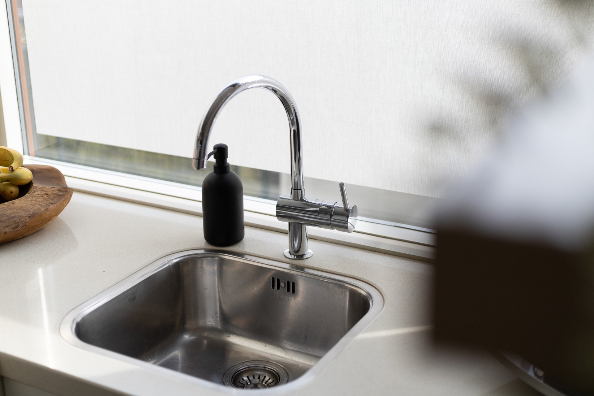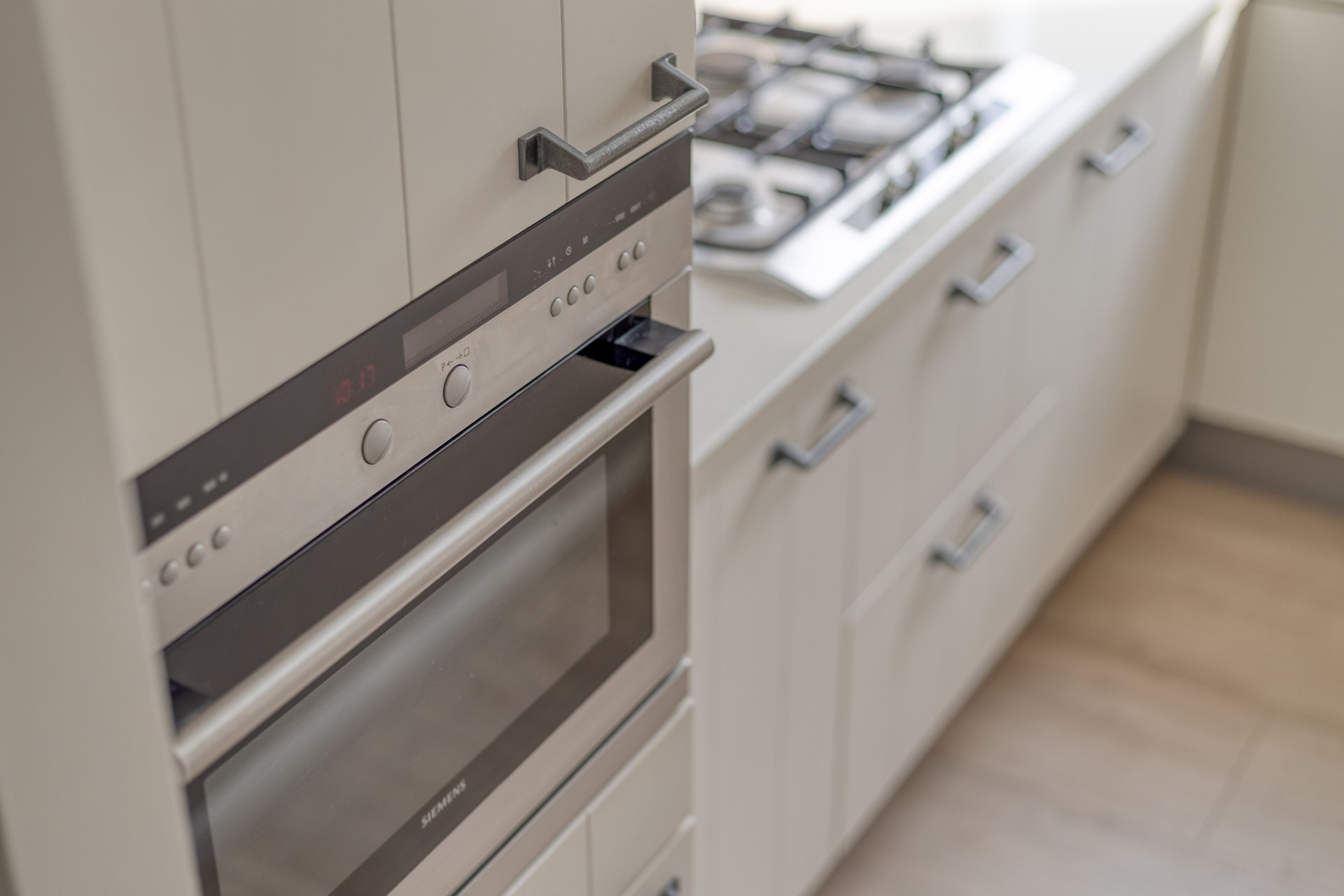 De lichte keuken bevindt zich aan de galerijzijde en is uitgerust met een vaatwasser, 4-pits gaskookplaat, afzuigkap, combimagnetron, koelkast en vriezer.