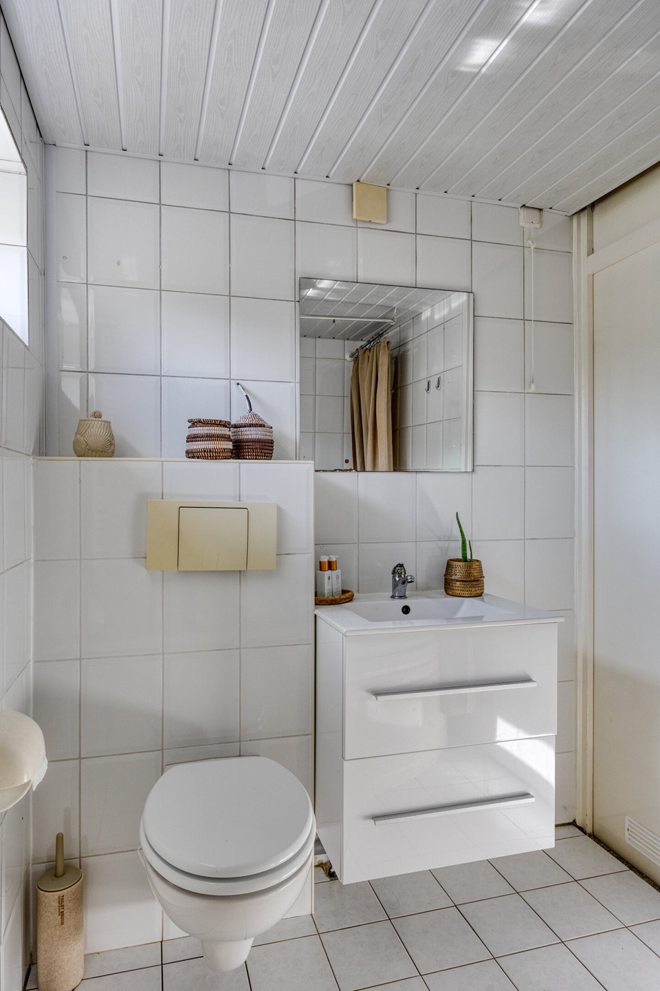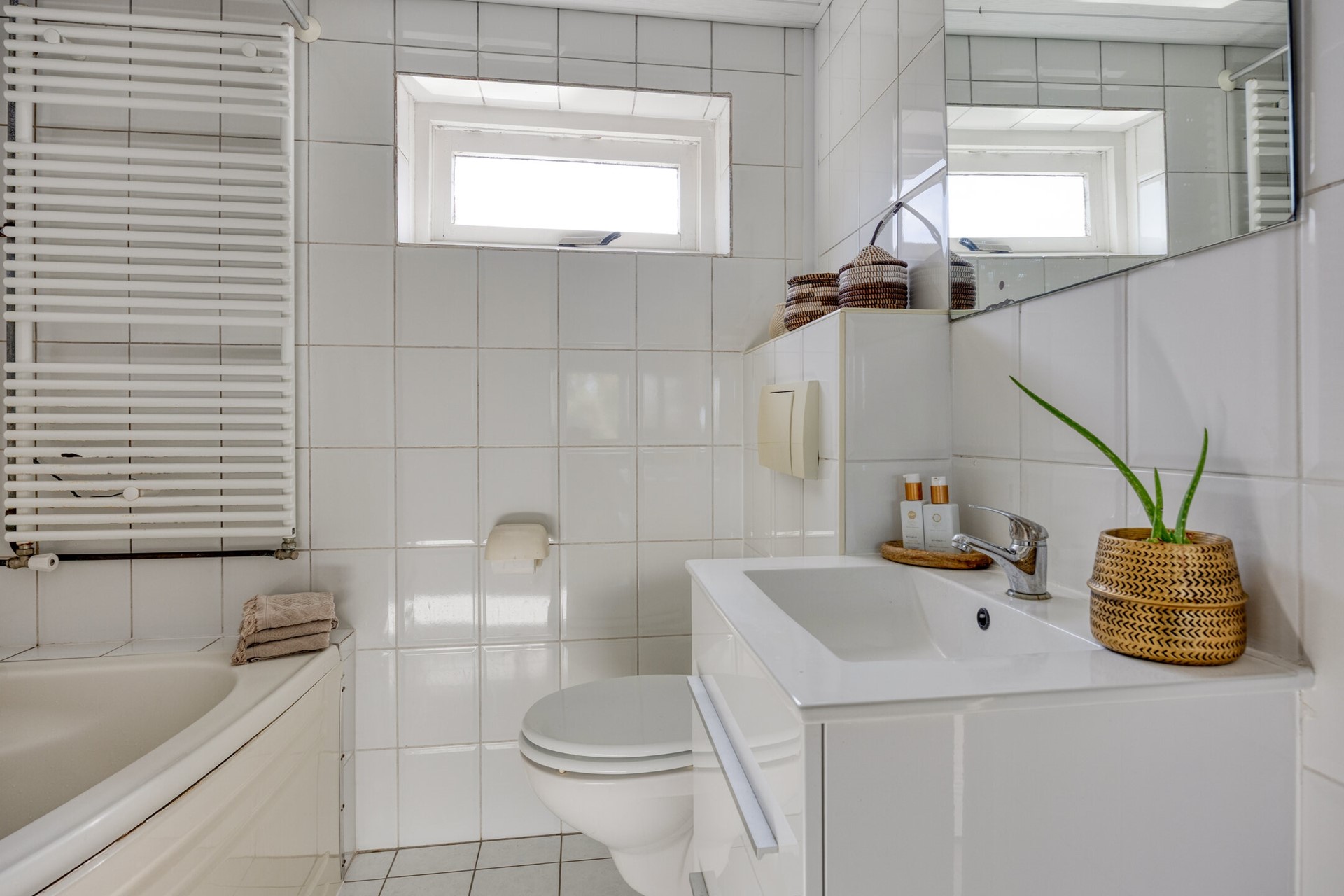 De verzorgde overloop biedt toegang tot drie comfortabele slaapkamers en de badkamer. De badkamer is volledig uitgerust met een tweede toilet, een bad-/douchecombinatie, een wastafel, een radiator én een raam, waardoor er altijd voldoende daglicht en frisse lucht aanwezig is.